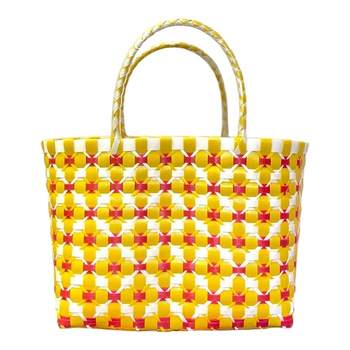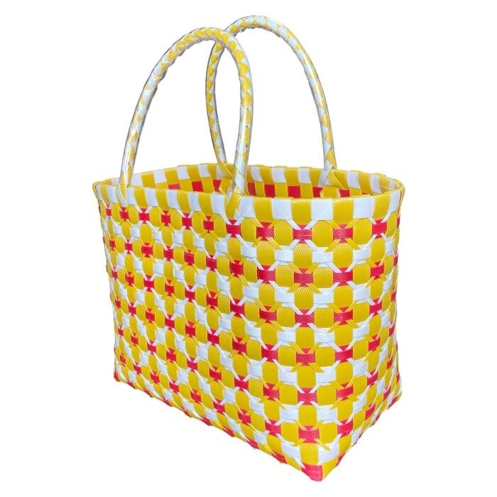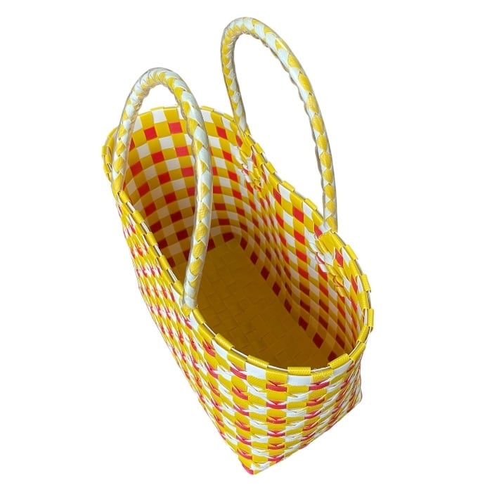 ベトナムで手に入れたプラカゴバッグは、春から夏にかけての季節にぴったりのアイテムです。手作りであるため、若干のほつれがあることがありますが、それが逆に独特の味わいを生み出しています。プラスチック製で軽量ながらも丈夫なので、日常使いに最適です!500mlのペットボトルがすっぽり縦に入るサイズ感は、ちょっとしたお出かけやビーチ、ピクニックに重宝します。カラフルなデザインは、コーディネートに華やかさをプラスし、あなたの日常を明るく彩ります。